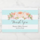 Maßgeschneidertes Babyduschetikett in hübschem, hellblau-weiß gestreiftem Muster mit pfirsichrosa Aquarellfarben-Blume.