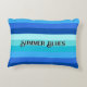 Frische Blues im Sommer, eine Farbpalette, die aus dem Ozean entlehnt und auf ein Akzent Kissen gesetzt wurde. Auf der einen Seite verlaufen die Streifen horizontal, auf der anderen vertikal. Sowohl vorne als auch hinten mit einem einfachen Beispieltext, der "Summer Blues" heißt. Behalt ihn oder personalisiere ihn mit einem Namen oder einem anderen Text nach deiner Wahl.