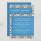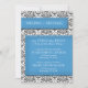 Moderne Einladungen für Ihre Hochzeit. Die blaugesteppte Zeichnung/Illustration über ein schwarz-weißes Damast-Muster. Zusätzliche Informationen, Anweisungen oder Details können auf der Rückseite gedruckt werden (optional).