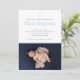 Benutzen Sie diese süße Vorlage, um Leute zu Ihrer Taufe für Ihr Baby einzuladen, mit zwei Räumen für Fotos. Die Farbe Weiß, Grau und Blau ist sehr schön. Der gesamte Text ist anpassbar.