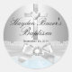 Blauer Taufsticker für Cross & Lace Bow Runder Aufkleber