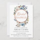 Wasserfarbene Blume in staubblauen und taupe mit Rose Goldrahmen Bridal Dusche Einladung. Personalisieren Sie Text, Schriftart, Farbe und Größe.