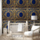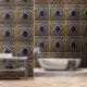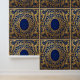 Peel und Stick Wallpaper indische inspirierte Design Rich Blue Gold Quadrate Wallpaper. Ein tolles Gaumenprojekt für Mieter, Hausbesitzer und Innenarchitekten. Erstellen Sie ein personalisiertes Aussehen für Ihr Zuhause condo Apartment Büro oder Geschäft. Dekorierte Wände verkleidet Möbel Bettkopfende Küche Backspritzer Türen oder Lagerbehälter. Den Möglichkeiten sind keine Grenzen gesetzt! Erhältlich in texturierter und glatter Vinyl. Größe 2'x4' 2'x8' 2x10' und 2'x12'.