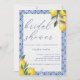 Sammeln Sie Ihre Lieben zu einem besonderen Fest mit dieser schicken Einladung, die speziell auf Ihr Brautparty zugeschnitten ist. Delikat mit einer raffinierten Blauen Tile auf dem Hintergrund und Lemons an den Ecken. Mit handgeschriebenem Set in marineblau strahlt diese Einladung Eleganz aus.