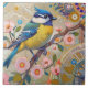 Blauer Tit Bird mit Tuft Rosa Blütenblumen Fliese
