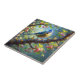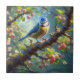 An einem sonnigen Tag sitzt eine blaue Titte zwischen den Beeren, Blätter und Ästen.