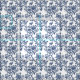 Ein traditionelles, blau-weißes Muster, das anmutige blühende Äste mit aufwändigen Blüten und Blätter darstellt und in einem Vintagen Stilstil dargestellt ist.