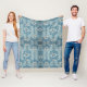 Das ist eine Fleecedecke mit blauen Farbtönen und Blumenmotiven.