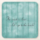 Ein hellblauer beunruhigter hölzerner Musterpapier-Untersetzer mit einer klaren Mitteilung: wenn es Zeit gibt, riechen Halt und die Rosen. Gelassen uns gehen Sie zum Strand!