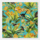 Diese Vintage Tapete mit türkisfarbenem Hintergrund ist ein lebendiger tropischer Dschungel mit Palmen und Bananenstauden, umgeben von farbenfrohen Blume und üppigen Blätter aus Bananen. Adorable Affen schwingen spielerisch zwischen den Ästen, verbunden mit anderen charmanten tropischen Tieren wie Toucans und Papageien, und schaffen eine lebendige und bezaubernde Szene. Die aufwändigen Details und die kräftigen Farben verleihen dem Design ein Gefühl von Laune und Abenteuer. Diese Tapete wäre perfekt für ein spielerisches Kinderzimmer, ein lebendiges Bad oder eine gemütliche Sonnenterrasse, die dem Raum eine lustige und exotische Touch verleiht.