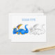 Eine blaue und gelbe lachende Drachenfarben Postkarte. Gutes Geschenk für das Kind oder das Kind Ihres geliebten Menschen.