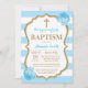 Blauer und goldener Glitzer Taufe Einladung. Junge Taufe. Erstkommunion. Feiern. Kindesentführung. Blaue und weiße Streifen. Rosa Blume mit Flora. Für weitere Anpassungen klicken Sie bitte auf die Schaltfläche "Anpassen" und verwenden Sie unser Designwerkzeug, um diese Vorlage zu ändern.