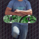 Blaue und grüne Wirbel und Grunge-Skateboards als Wandkunst oder Skateboard