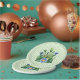 Dieses Design bietet eine Mischung aus grafischen Formen und farbenfrohen Blume. Der Hintergrund ist ein Muster grüner Blätter. Im Zentrum des Designs gibt es eine Gruppe von blauen und orangen Blume. Dieses generische Design ist perfekt für Ostern, Muttertag, Geburtstage, Brautpartys und so viele festliche Anlässe.