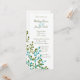 Mit dieser speziellen Einladung kündigen Sie Ihre Hochzeit an Ihre Freunde und Familie. Diese individuell einstellbare, lange Hochzeitsankündigung weist ein grün-blaues Blumenmuster auf einem weißen Hintergrund mit dunkelgrünem Text auf.