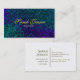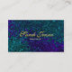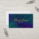 Eine blaue und grüne Glittergeschäftskarte mit Goldbeschriftung.
