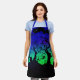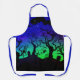 Blauer und grüner Spuk Friedhof Halloween Schürze. Diese Schürze zeigt einen Spuk Friedhof in schwarz, blau und neongrün mit Grabsteinen, spoky Bäumen, Hexe, Eule und Fledermäusen.