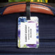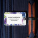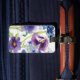Heller lila und blauer Pansy und Delphium auf Weiß. Shirley Novak