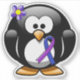 Niedlicher Pinguin mit blauem und lila Band und passender Blume. Das blaue und lila Band steht für Rheumatoide Arthritis und Pädiatrische Schlaganfälle. Mai ist ein pädiatrischer Stroke Awareness Montag und Arthritis | Rheumatoide Arthritis Aufklärung Monat.