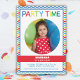 Spaß und farbenfrohe Einladung, mit einem Ballonbuchstaben Party-Phrase, Ihrem Lieblings-Foto und einem farbenfrohen Hintergrund ist die perfekte Kombination für ein kleines Party