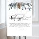 Herzlich willkommen zu Ihrer Zeremonie mit diesem einzigartigen und eleganten, unkoordinierten Zeremonie-Zeichen. 8" x 10" ist einfach ein Beispiel, Sie können aus einer Vielzahl von kleineren und größeren Größen wählen. Feine Aquarellfarben mit Blumenmotiven in Blau, Schiefer, Salbei- und Rosttönen. Verwendung von handgeschriebener Kalligraphie. Koordinierung der verfügbaren Produkte.