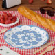 Blauer und weißer Blumenzack Papierplatte Pappteller