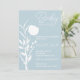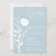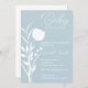 Eine schöne, einfache und elegante Babydusche mit Blumenmotiv vor blauem Hintergrund.