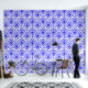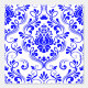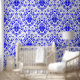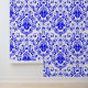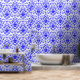Blauer und weißer Damast Blütenschale und -stift Tapete