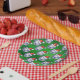 Blauer und weißer festlicher Fußball auf Grün Pappteller