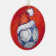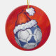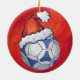 Blau und Weiß Futbal in einer Weihnachtsmannmütze über Rote Ornamente, Geschenke und lustige Dekorationen bieten unsere originale blau-weiße Fußball-Kunst, die alle für den Urlaub in einer roten Weihnachtsmannmütze auf einem strukturierten roten Hintergrund verziert ist. Dieser sportlich gestaltete und unterhaltsame Urlaub ist perfekt für alle, die Lieben spielen, Fußball, Fußball und Fußball und für die Ferien dekorieren. Viel Spaß und sportliche Weihnachten. Es ist alles Spaß und Spiele im ITD Sportzentrum. Individuelle Designs sind verfügbar.