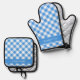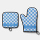 Blauer und weißer Gingham Bauernhof Personalisiert Ofenhandschuh & Topflappen-Set