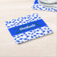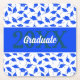 Blau-weiße Graduationskappen, die sowohl ihm als auch ihr in die Luft geworfen werden. Schöner Untersetzer zur Dekoration der Abschlussfeier für einen Absolventen einer High School, Uni oder Universität mit den Farben Blau und Weiß. Personalisieren Sie mit dem Abschluss Jahr und Name des Absolventen.