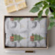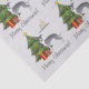 Desteis originelle Cartoon-Illustration einer niedlichen Blau-Weiß-Fellfarbe Italienischer Grauhund Rasse Hund. Der Hund wird von einem festlichen Weihnachtsbaum stehend, der mit roten und gelben Ornamenten verziert ist, einer Perlgarage und einem gelben Stern, der auf dem Baumgipfel steht. Es gibt auch zwei Geschenke vom Baum umwickelt und hinter dem Hund gibt es ein braunes Regal mit zwei Kerzen. Es gibt auch einen personalisierbaren Textbereich, der jetzt lautet: "Frohe Weihnachten!". Das Design wird sechsmal platziert und erzeugt ein kleines Muster.