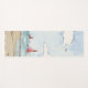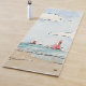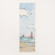 Illustrierte Küstenszene mit blauem und weißem Leuchtturm.