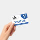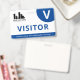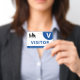 Horizontales Abzeichen mit schlichtem Design in Weiß und Blau. Eine große weiße V macht es einfach, den Besucher schnell zu erkennen. Persönlich mit Ihrem Firmenlogo.