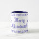 Blau und Weiß Moderner Weihnachtsbaum und Gingerbread Man Muster mit individuellem Text Frohe Weihnachten in Eleganter Schrift, können Sie ändern oder löschen, den Text, Winter Saison Weihnachten Kaffee Tasse für Kinder aller Altersgruppen