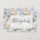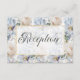 Dieses Design der Hochzeitsempfangskarte zeichnet sich durch ein wunderschönes zartes, ockerblaues und weißes rustikales Blumenmuster auf einem staubigen, periwinkelblauen Hintergrund aus. Der Text wird auf einem weichen, durchsichtigen Textbereich mit einem goldenen Glitzer-Rahmen für Imitate angezeigt, während die Rückseite das Blumenmuster fortsetzt. Diese Karte ist Teil der Hochzeitssuite Blue & White Rustic Floral Gold Frame, die von Simply Farmhouse Press kreiert wurde.