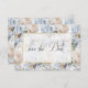 Das Design der Save the Date gestalteten Karte zeichnet sich durch ein wunderschönes, weiches, ockerblaues, rustikales Blumenmuster auf einem staubigen, periwinkelblauen Hintergrund aus. Der Text wird auf einem weichen, durchsichtigen Textbereich mit einem goldenen Glitzer-Rahmen für Imitate angezeigt, während die Rückseite das Blumenmuster fortsetzt. Diese Karte ist Teil der Hochzeitssuite Blue & White Rustic Floral Gold Frame, die von Simply Farmhouse Press kreiert wurde.