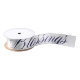 Blau-weiße Schleife mit "Segen" in übergroßer Typografie. Klassische holländische Geschenkband. Blauer und weißer Segen Elegante Typografie Satin Ribbon. In unserer Kollektion finden Sie atemberaubendere abstrakte Geschenkideen. Schönes Indigoblau und weiß.