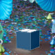 Blauer und weißer Streifen mit Blumenakzept Geschenkschachtel