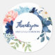 Blauer und weißer Wasserfarben Blütenhochzeit Runder Aufkleber
