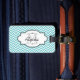 Dieser schöne Gepäckumbau kennzeichnet einen Zickzack Streifenentwurf von Aqua blau und Weiß auf Front und Rückseite mit Bereichen, die Sie mit Ihrer Zahl des Namens und der Initiale sowie des Telefons besonders anfertigen können des letzten Namens oder volle Adresse.
