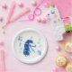 Hübscher Geburtstags-Papier-Teller des Mädchens, mit Grafiken eines blauen Unicornsprofils und der blauen und tadellosen grünen Blumen. Fertigen Sie besonders an, um Text dieser reizenden Partyplatte hinzuzufügen. Zusammenpassende Servietten und Einladungen sind verfügbar.