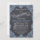 Vintage Blautafel mit Rahmen und Kalkboard Babydusche mit einem himmelblauen Vintagen Rahmen von Scroll-Blätter auf kohlegrauem Chalkboard oder schwarzer Tafel und dem Text in einem Scrollbanner. Moderne und zeitgemäße Herangehensweise an ein Vintages Thema. Dieses Retro-Template-Design ist vollständig anpassbar und kann personalisiert werden.