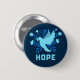 Der Blaue Vogel der Hoffnung und des Friedens. Grafik- und Textdesign, die die Silhouette einer Taube mit dem Wort Hoffnung darstellen. Button für hoffnungsvolle und optimistische Menschen.