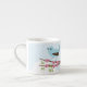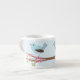 Blaue Vögel auf einem rosa blühenden Ast. Espresso Tasse, klicken Sie auf Anpassen, um Personalisierung hinzuzufügen.