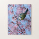 Blauer Vogel in rosafarbenen, japanischen Kirschbl Puzzle