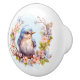 Hübscher, blauer und weißer Babyvogel in pastellfarbener, blumengeschmückter Schublade. Preiswerte Küche oder Möbelupdate.