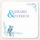 Blauer Vogel mit Ornamenten und Monogramm Rechteckiger Pappuntersetzer