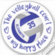 Dieser Volleyball-Vinyl-Aufkleber zeichnet sich durch ein realistisches Bild eines blauen, grauen und weißen Volleyballs aus, umgeben von der Phrase "Der Volleyballplatz ist mein glücklicher Ort" und zwei Konturen im lässigen, handgeschriebenen Stil, blaue Schrift - personalisieren Sie den Namen und die Trikotnummer des Athleten - von katz_d_zynes